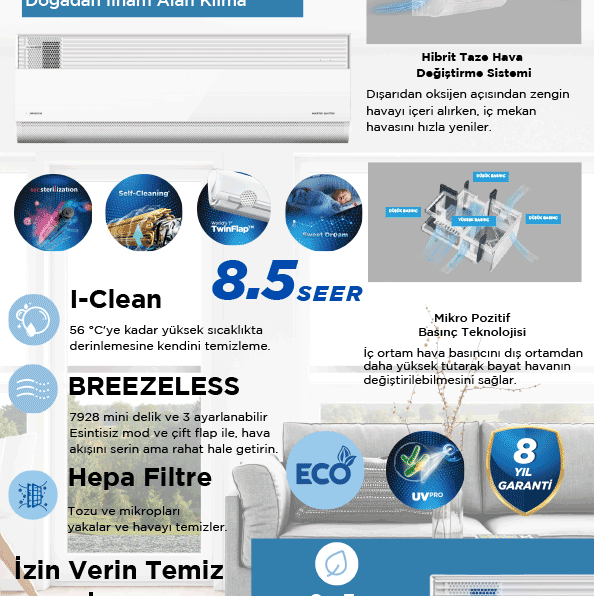 Klimayı akıllı cihazlar aracılığıyla kolayca kontrol etme imkanı sağlar.