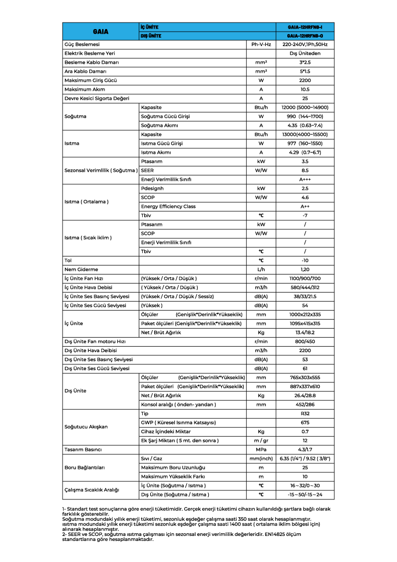 Gaia Midea Duvar Tipi Klima GAIA-12HRFN8- I (4 metreye kadar bakır borulu montaj dahil)
